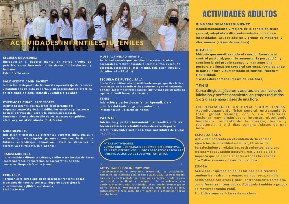 A través del Servicio Comarcal de Deportes, al objeto de fomentar el deporte base, se organizan torneos y competiciones entre las distintas localidades de la comarca: bicicleta de montaña, liga comarcal de frontenis, cross, concurso comarcal de pesca, campeonato de futbol sala y futbol 7 escolar, juegos deportivos en edad escolar, campo a través, trail. También se organizan durante el curso actividades infantiles (ajedrez, judo, multideporte, psicomotricidad) y las escuelas deportivas de patinaje, frontenis, baloncesto, tenis, voleibol, natación escolar y escalada.